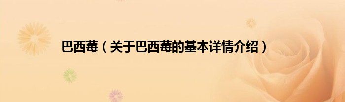 本文关于巴西莓的基本详情介绍就讲解完毕,希望对大家有所帮助。