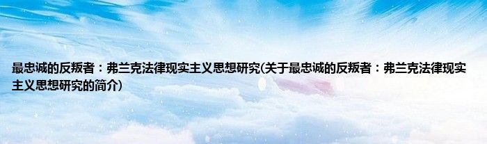大家好,最忠诚的反叛者:弗兰克法律现实主义思想研究,关于最忠诚的反叛者:弗兰克法律现实主义思想研究的简介很多人还不知道,现在让我们一起来看看吧!