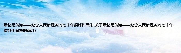 本文关于最忆是黄河——纪念人民治理黄河七十年很好作品集的简介就讲解完毕,希望对大家有所帮助。