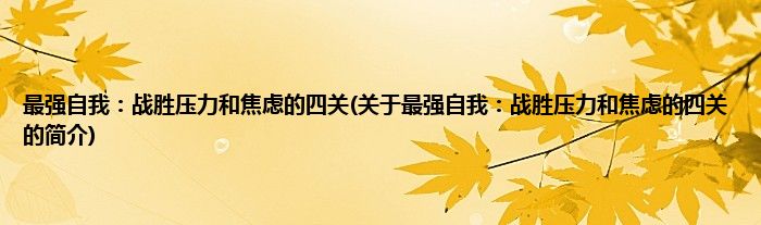 大家好,最强自我:战胜压力和焦虑的四关,关于最强自我:战胜压力和焦虑的四关的简介很多人还不知道,现在让我们一起来看看吧!