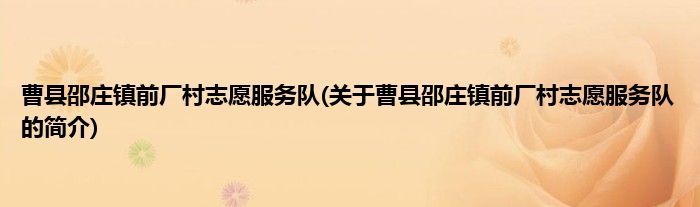 本文关于曹县邵庄镇前厂村志愿服务队的简介就讲解完毕,希望对大家有所帮助。