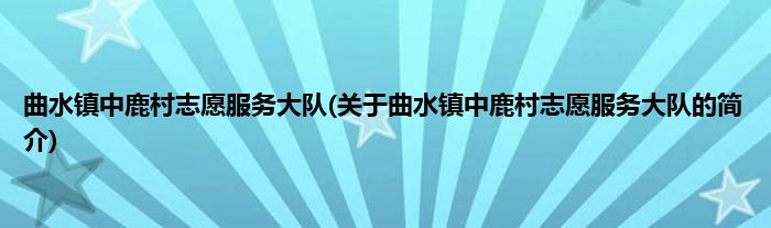 本文关于曲水镇中鹿村志愿服务大队的简介就讲解完毕,希望对大家有所帮助。