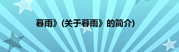 暮雨》(关于暮雨》的简介)