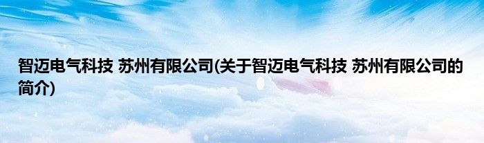 大家好,智迈电气科技 苏州有限公司,关于智迈电气科技 苏州有限公司的简介很多人还不知道,现在让我们一起来看看吧!