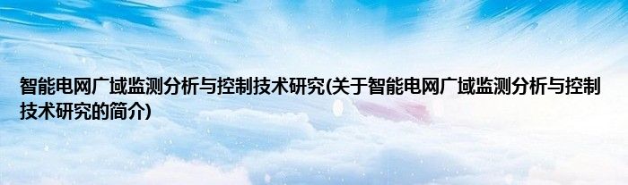 大家好,智能电网广域监测分析与控制技术研究,关于智能电网广域监测分析与控制技术研究的简介很多人还不知道,现在让我们一起来看看吧!