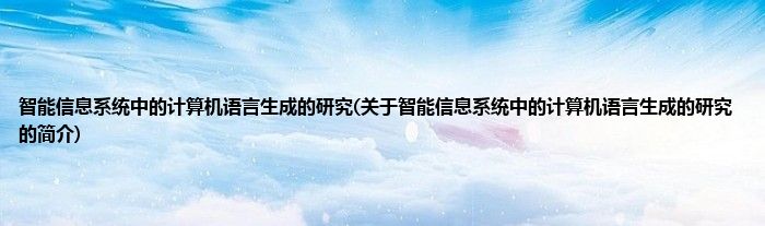 本文关于智能信息系统中的计算机语言生成的研究的简介就讲解完毕,希望对大家有所帮助。