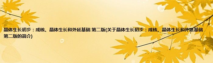 1、 《晶体生长初步:成核、晶体生长和外延基础(第二版)》是2018年9月1日高等教育出版社出版的图书。