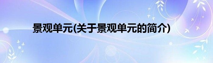 景观单元(关于景观单元的简介)