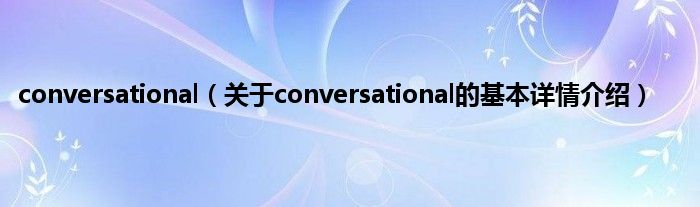 本文关于conversational的基本详情介绍就讲解完毕,希望对大家有所帮助。