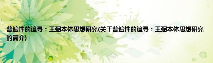 大家好,普遍性的追寻:王弼本体思想研究,关于普遍性的追寻:王弼本体思想研究的简介很多人还不知道,现在让我们一起来看看吧!