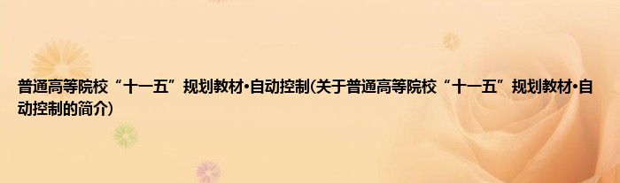 本文关于普通高等院校“十一五”规划教材·自动控制的简介就讲解完毕,希望对大家有所帮助。