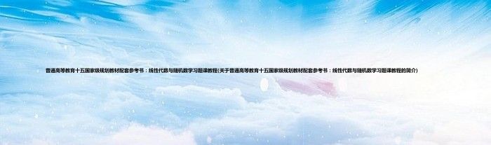 大家好,普通高等教育十五国家级规划教材配套参考书:线性代数与随机数学习题课教程,关于普通高等教育十五国家级规划教材配套参考书:线性代数与随机数学习题课教程的简介很多人还不知道,现在让我们一起来看看吧!