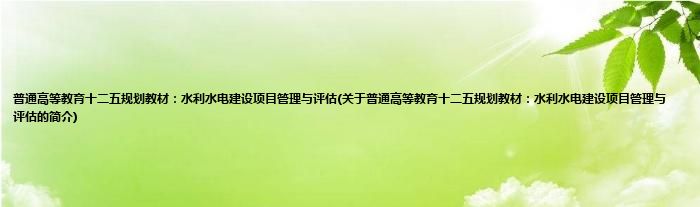 本文关于普通高等教育十二五规划教材:水利水电建设项目管理与评估的简介就讲解完毕,希望对大家有所帮助。