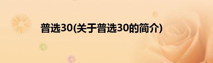 大家好,普选30,关于普选30的简介很多人还不知道,现在让我们一起来看看吧!