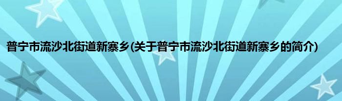 大家好,普宁市流沙北街道新寨乡,关于普宁市流沙北街道新寨乡的简介很多人还不知道,现在让我们一起来看看吧!