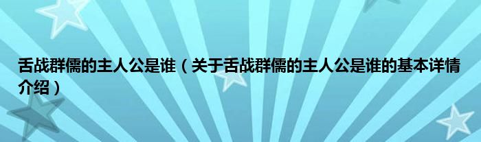 大家好我是小蝌蚪,舌战群儒的主人公是谁,关于舌战群儒的主人公是谁的基本详情介绍很多人还不知道,那么现在让我们一起来看看吧!