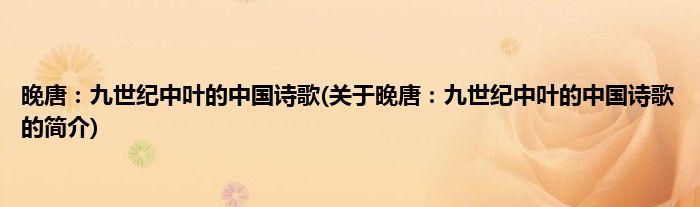 本文关于晚唐:九世纪中叶的中国诗歌的简介就讲解完毕,希望对大家有所帮助。