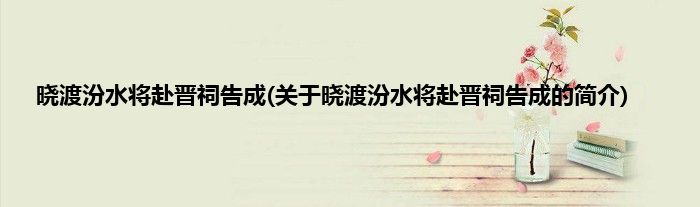 本文关于晓渡汾水将赴晋祠告成的简介就讲解完毕,希望对大家有所帮助。