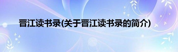 本文关于晋江读书录的简介就讲解完毕,希望对大家有所帮助。