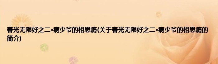 本文关于春光无限好之二·病少爷的相思瘾的简介就讲解完毕,希望对大家有所帮助。
