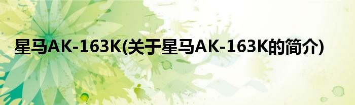 本文关于星马AK-163K的简介就讲解完毕,希望对大家有所帮助。