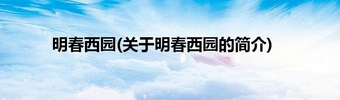 大家好,明春西园,关于明春西园的简介很多人还不知道,现在让我们一起来看看吧!