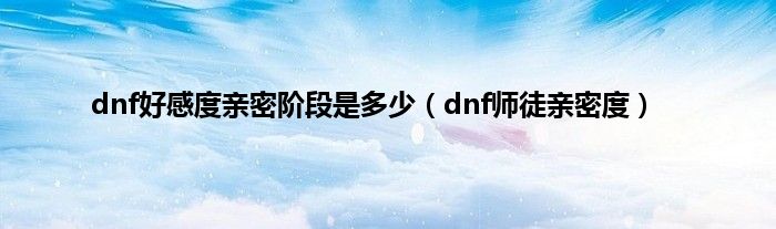 大家好,精选小编来为大家解答以上问题。dnf好感度亲密阶段是多少,dnf师徒亲密度很多人还不知道,现在让我们一起来看看吧!