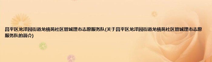本文关于昌平区龙泽园街道龙禧苑社区管城理市志愿服务队的简介就讲解完毕,希望对大家有所帮助。