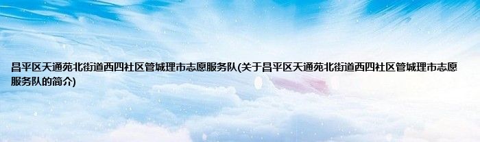 本文关于昌平区天通苑北街道西四社区管城理市志愿服务队的简介就讲解完毕,希望对大家有所帮助。