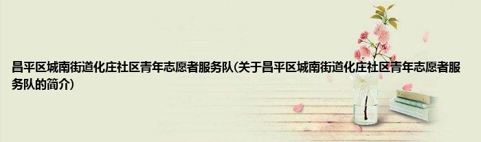 本文关于昌平区城南街道化庄社区青年志愿者服务队的简介就讲解完毕,希望对大家有所帮助。