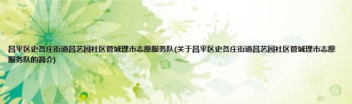 本文关于昌平区史各庄街道昌艺园社区管城理市志愿服务队的简介就讲解完毕,希望对大家有所帮助。