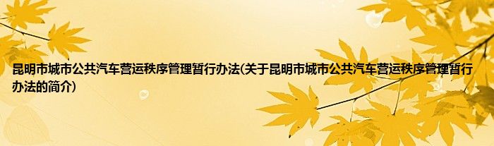 昆明市城市公共汽车营运秩序管理暂行办法(关于昆明市城市公共汽车营运秩序管理暂行办法的简介)