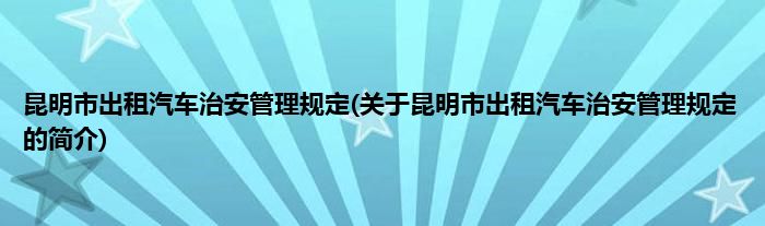本文关于昆明市出租汽车治安管理规定的简介就讲解完毕,希望对大家有所帮助。