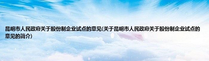大家好,昆明市人民政府关于股份制企业试点的意见,关于昆明市人民政府关于股份制企业试点的意见的简介很多人还不知道,现在让我们一起来看看吧!
