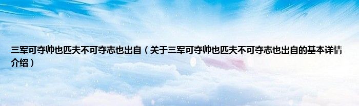 大家好我是小蝌蚪,三军可夺帅也匹夫不可夺志也出自,关于三军可夺帅也匹夫不可夺志也出自的基本详情介绍很多人还不知道,那么现在让我们一起来看看吧!