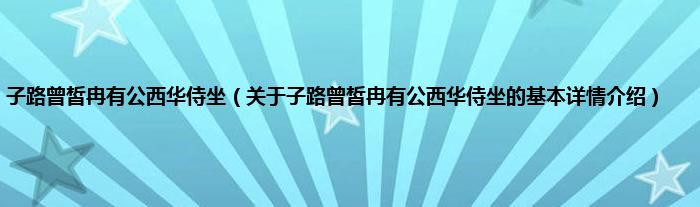 本文关于子路曾皙冉有公西华侍坐的基本详情介绍就讲解完毕,希望对大家有所帮助。