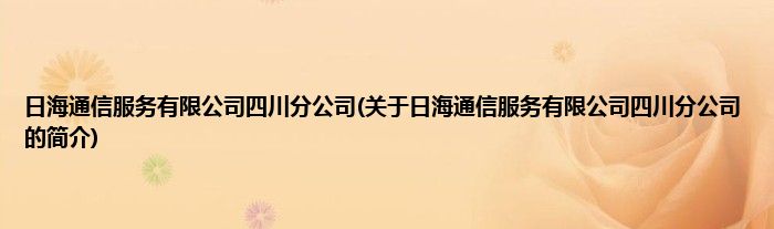大家好,日海通信服务有限公司四川分公司,关于日海通信服务有限公司四川分公司的简介很多人还不知道,现在让我们一起来看看吧!