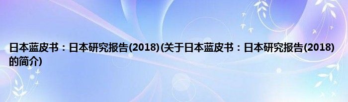 1、 《日本蓝皮书:日本研究报告(2018)》是2018年4月社会科学文献出版社出版的图书。