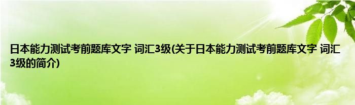 本文关于日本能力测试考前题库文字。词汇3级的简介就讲解完毕,希望对大家有所帮助。