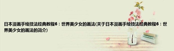 本文关于日本漫画手绘技法经典教程6:世界美少女的画法的简介就讲解完毕,希望对大家有所帮助。