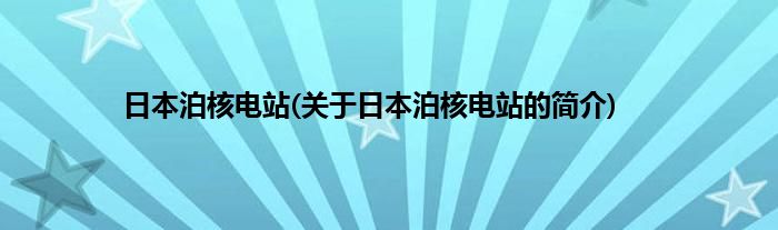 大家好,日本泊核电站,关于日本泊核电站的简介很多人还不知道,现在让我们一起来看看吧!
