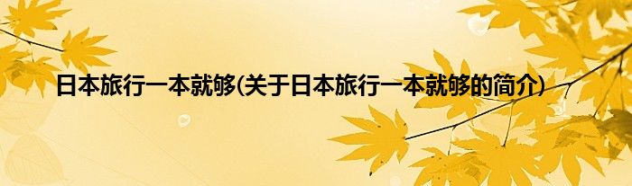 本文关于日本旅行一本就够的简介就讲解完毕,希望对大家有所帮助。