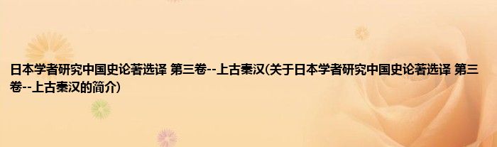 本文关于日本学者研究中国史论著选译 第三卷--上古秦汉的简介就讲解完毕,希望对大家有所帮助。