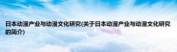 日本动漫产业与动漫文化研究(关于日本动漫产业与动漫文化研究的简介)
