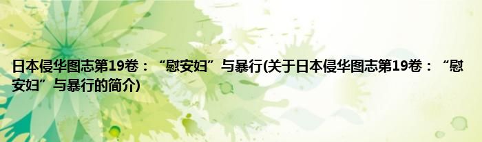 本文关于日本侵华图志第19卷:“慰安妇”与暴行的简介就讲解完毕,希望对大家有所帮助。