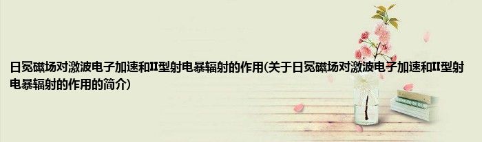 本文关于日冕磁场对激波电子加速和II型射电暴辐射的作用的简介就讲解完毕,希望对大家有所帮助。