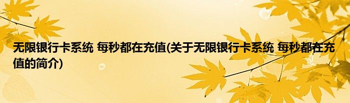 本文关于无限银行卡系统,每秒都在充值的简介就讲解完毕,希望对大家有所帮助。