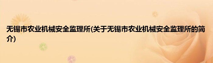 本文关于无锡市农业机械安全监理所的简介就讲解完毕,希望对大家有所帮助。