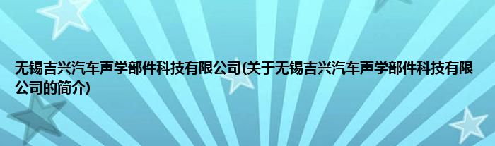 本文关于无锡吉兴汽车声学部件科技有限公司的简介就讲解完毕,希望对大家有所帮助。