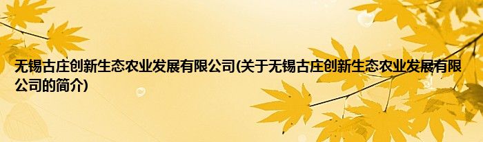 本文关于无锡古庄创新生态农业发展有限公司的简介就讲解完毕,希望对大家有所帮助。